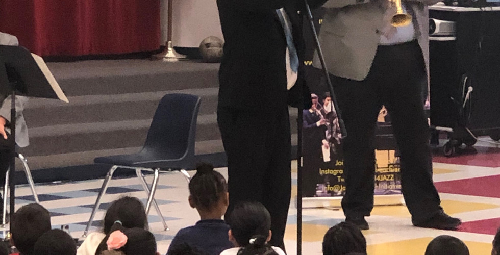 Back again for this school year, were our two highly engaging and ever popular educational outreach programs, “Buzzin’ in Brass” and “Jazz for Young People”. “Buzzin’” features the JOI brass quintet and takes Title I elementary school student audiences through an immersive discovery of the instruments of the brass quintet and then performances of age-appropriate recognizable tunes set to jazz themes. The program is sponsored in part through The Smith Center’s education program and costs our schools nothing for the back to back hour-long performances. Feedback from students is always tremendously joyful as they sing and clap along and answer questions. Principals and teachers rave about the program and request us back year after year.